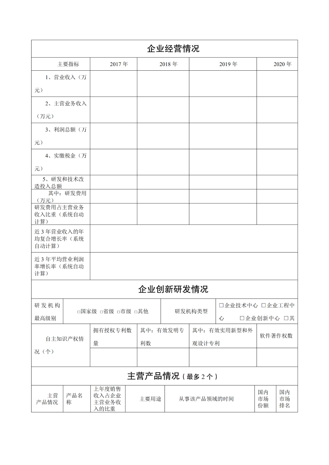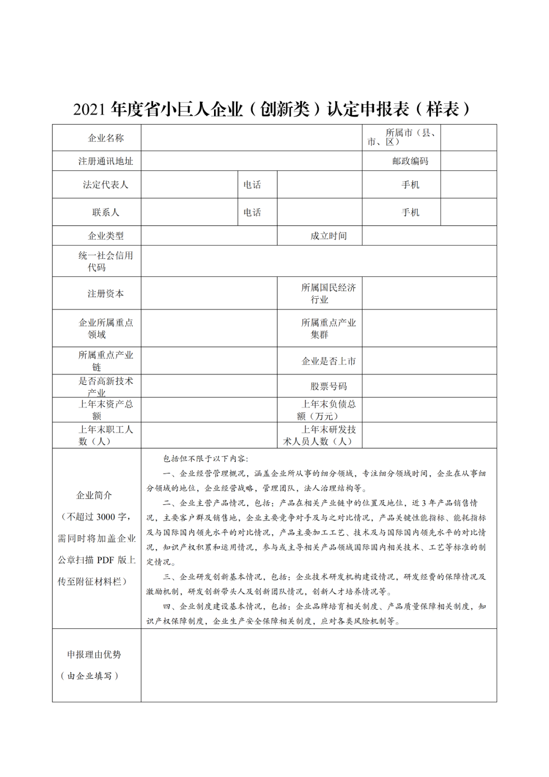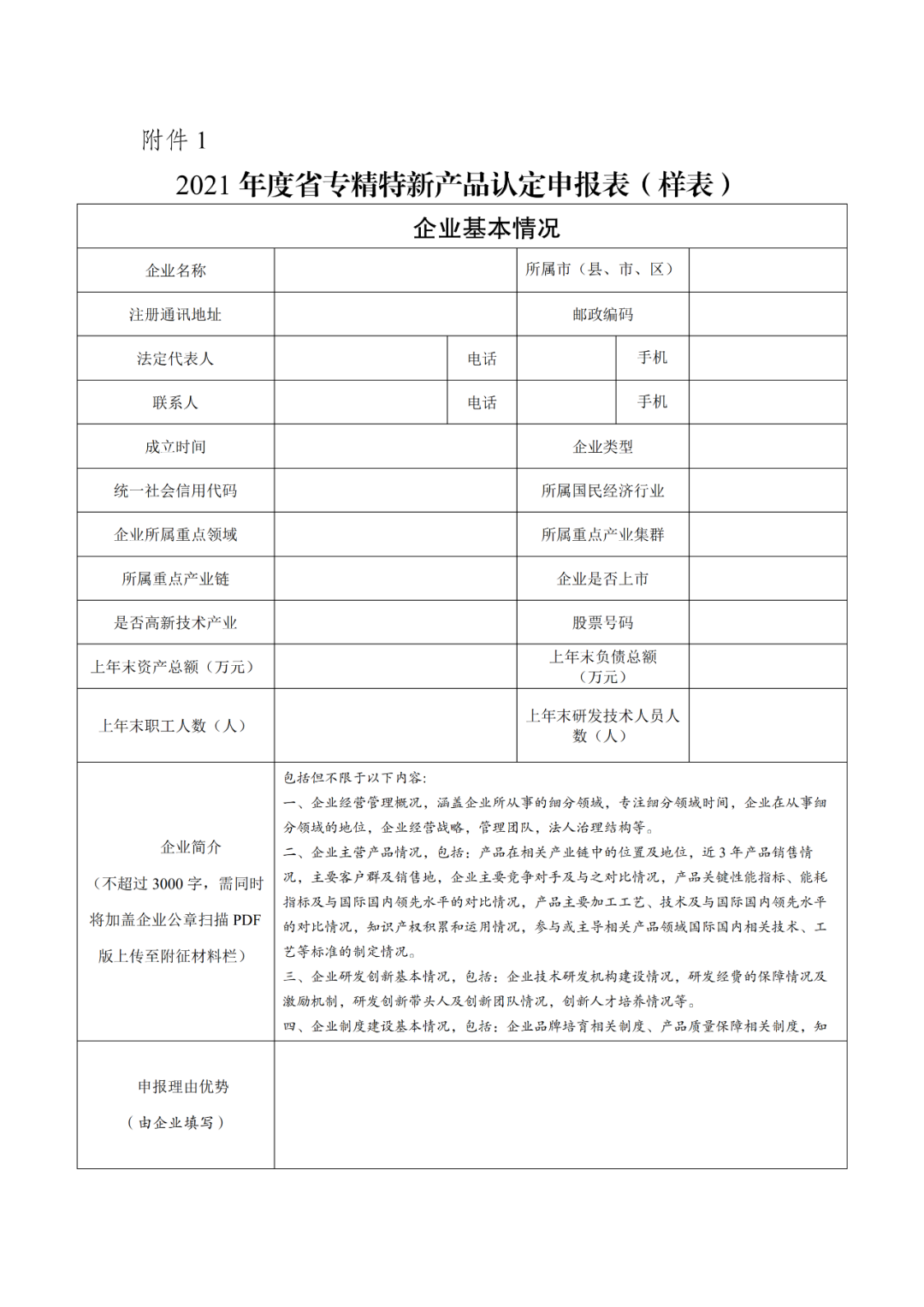 附件:1.2021年度江蘇省專精特新小巨人企業(yè)申報(bào)樣表