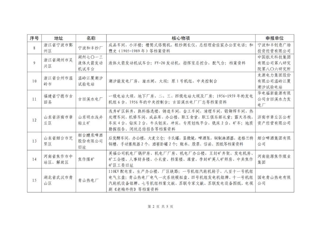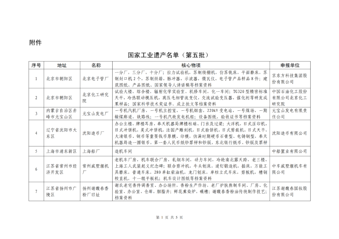 附件:國家工業(yè)遺產(chǎn)名單(第五批)